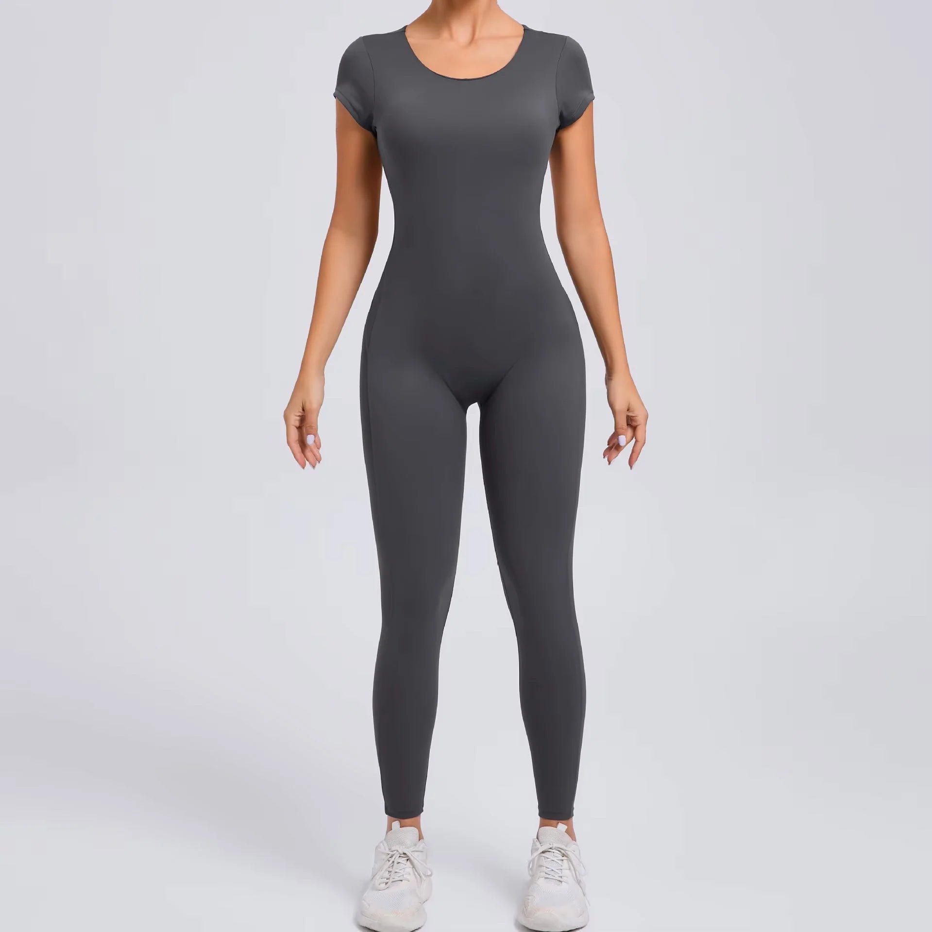 El diseño de manga corta fluye hacia una espalda completamente abierta, mejorando la definición de la espalda mientras que la silueta de leggings de largo completo crea un acabado elegante y alargado.